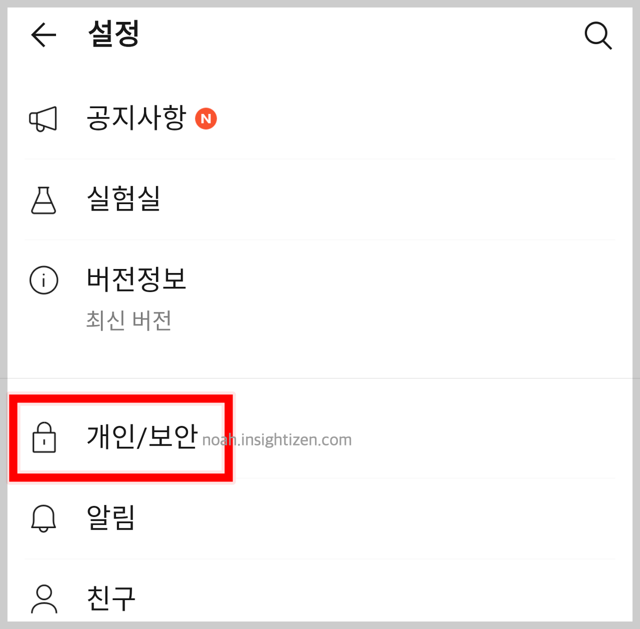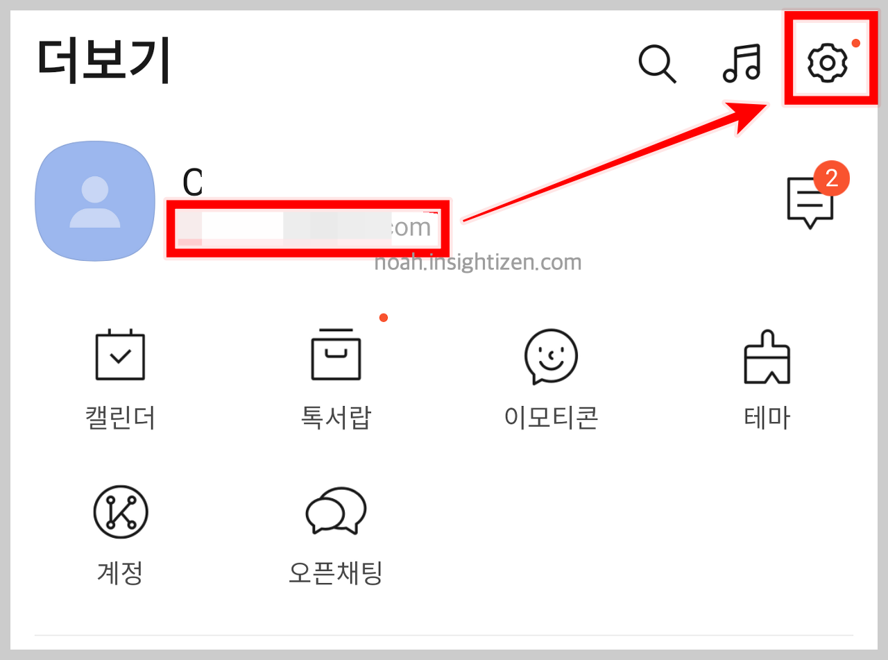 - 더보기 메뉴에서 오른쪽 위에 있는 톱니바퀴(⚙️)로 들어갑니다.